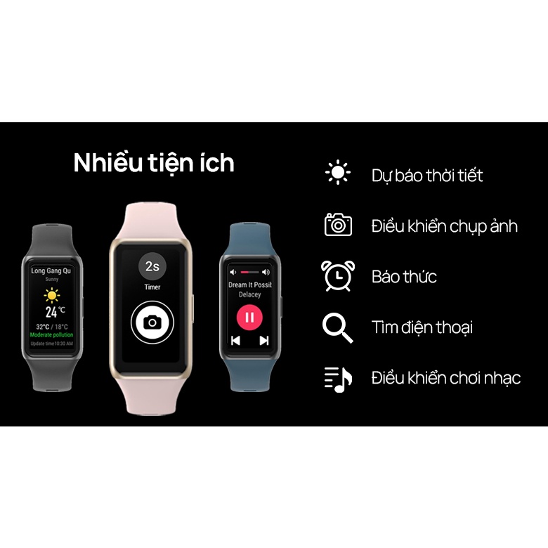 - Huawei Band 6 sở hữu nhiều tính năng dùng để theo dõi sức khỏe như: nhịp tim Huawei Trusceen 4.0. Qua đó, nó hỗ trợ việc theo dõi nhịp tim liên tục trong 24/7 kể cả khi bạn đang sử dụng ở trạng thái nghỉ ngơi.